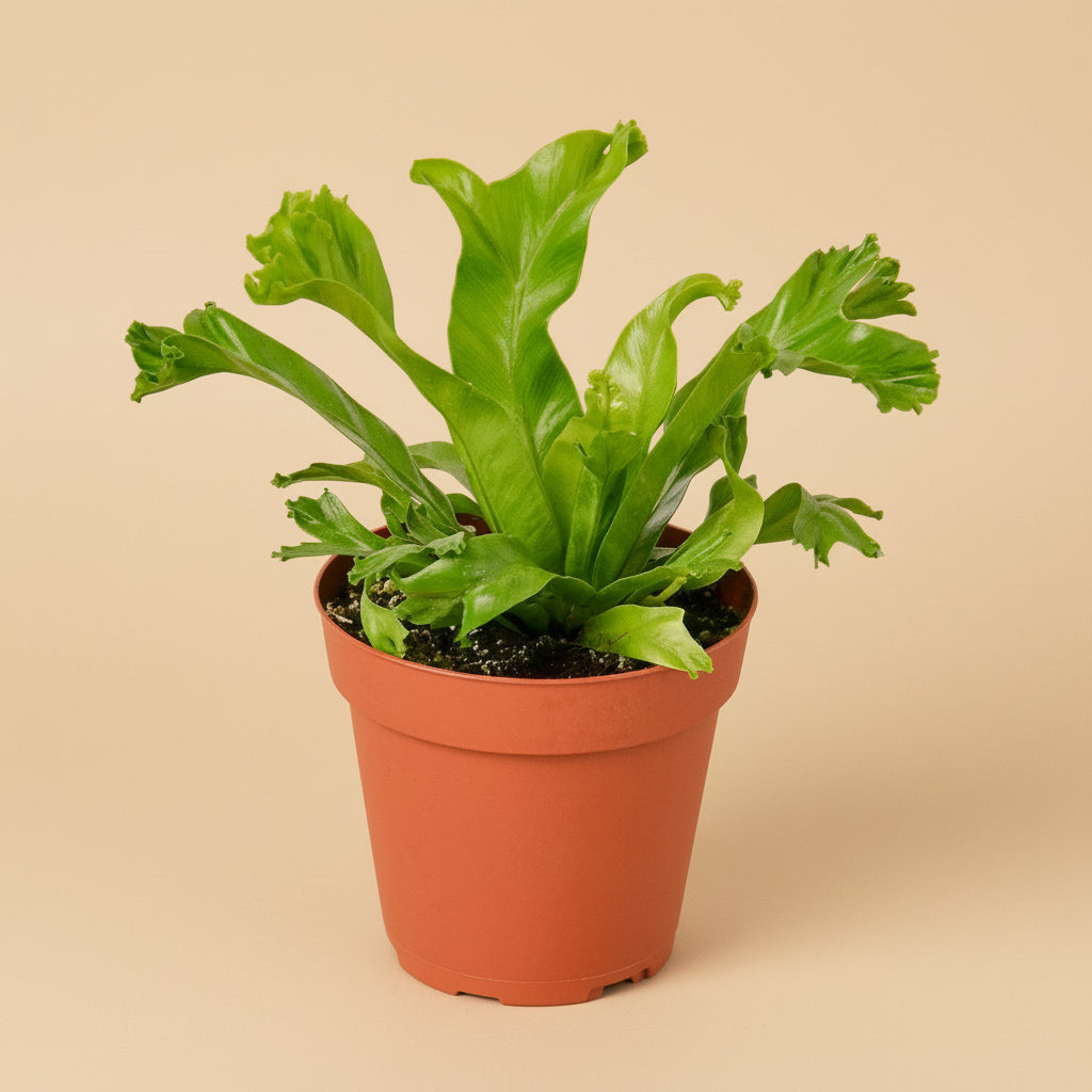 - Description: Native to the tropical regions of Asia and east Africa, Asplenium antiquum 'Leslie' comes from the same family of ferns as the 'Nidus'. Like the Nidus, this tropical plant prefers "rainforest" conditions in partial shade or indirect sunlight, and humidity. Its leaves are differentiated from the 'Nidus' by its compact uniform width and split curly ends.