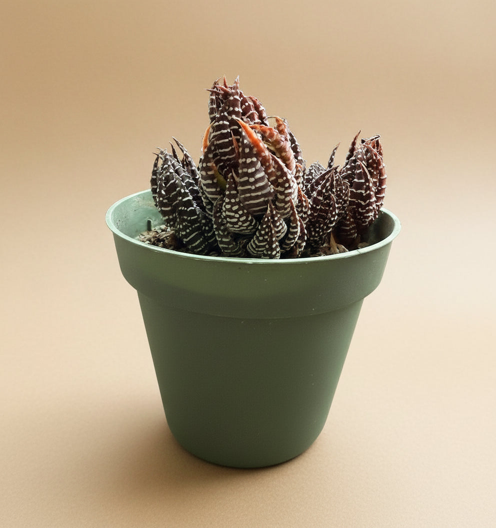 The Zebra Haworthia is slow-growing, hardy, and exceptionally low-maintenance, thriving in bright, indirect light with minimal watering. Its tidy form makes it perfect for desks, windowsills, succulent arrangements, or as a cute accent in small spaces.
