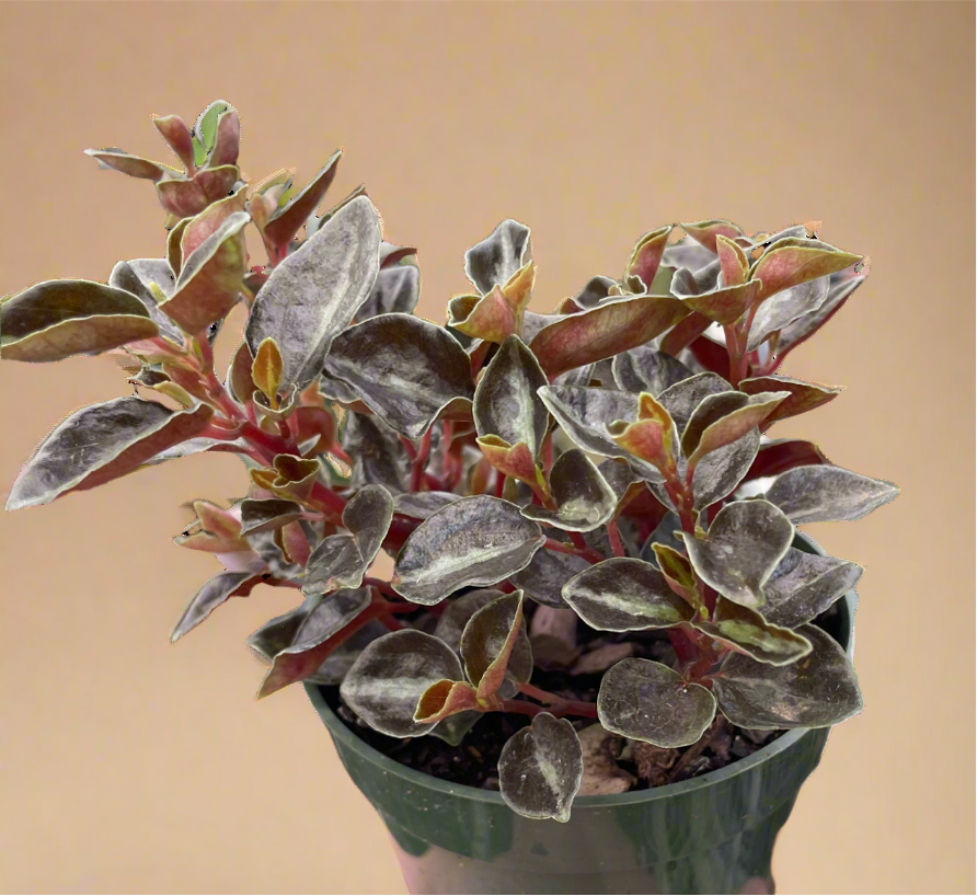 Peperomia ‘Metallica’ is a striking houseplant admired for its thick, textured foliage with a metallic sheen. Its elongated, deep green leaves shimmer with silvery highlights, giving the plant a unique, sculptural appearance. Compact and low-growing, it’s ideal for desks, shelves, or small decorative containers, adding a touch of modern elegance to any indoor space.