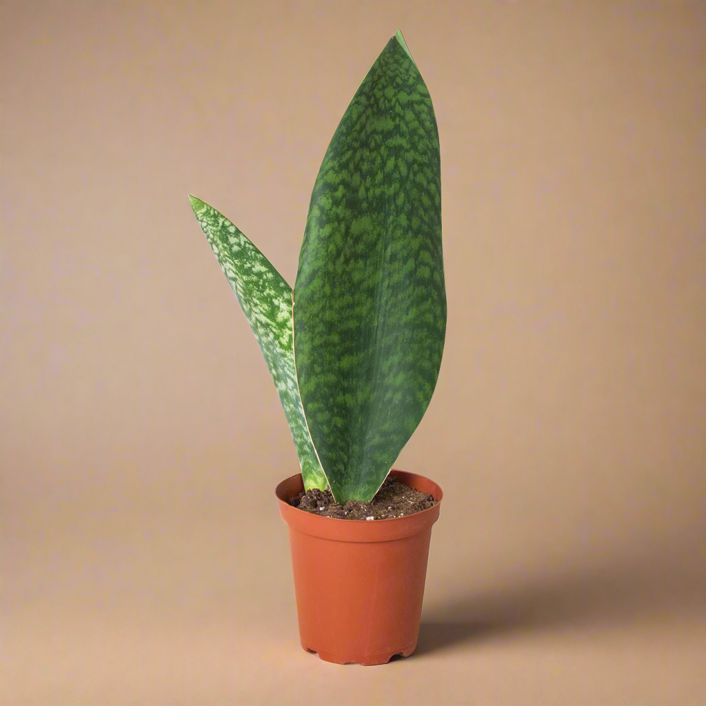 This hardy plant thrives on neglect, tolerating low to bright indirect light and requiring only occasional watering. Its drought tolerance and slow growth make it a low-maintenance choice for beginners and seasoned plant lovers alike. Like other snake plants, it’s also an excellent air purifier, helping to filter indoor pollutants and improve air quality. Toxic to pets if ingested, so place it with care.