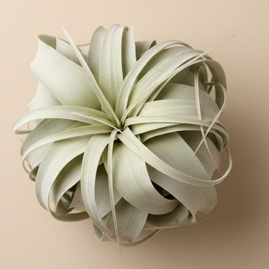 Tillandsia xerographica, known as the King Air Plant, is one of the most striking and sought-after air plants available. Native to Central America, this sculptural Tillandsia is prized for its large size, dramatic silvery-green leaves, and perfectly symmetrical rosette form. Thick, curling leaves are coated in soft trichomes that give the plant its signature frosted appearance while helping it thrive with minimal care.